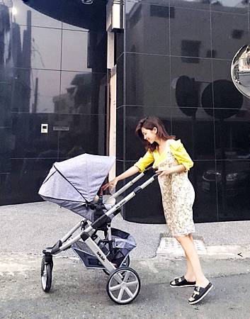 就像推Rimowa行李箱一樣,輪子實在太好推,非常省力,寶寶上車加上隨身行李,單手推,一點都沒有負擔。